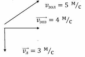 Как должен двигаться заяц относительно льдины, которая плывёт по реке на юг со скоростью, модуль которой равен 3 м/с, чтобы двигаться относительно берега на восток со скоростью, модуль которой равен 4 м/с?