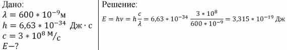 Определите энергию фотона, если ему соответствует волна, длина которой равна 600 нм.