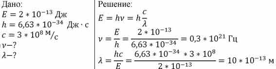Энергия гамма-кванта равна 2 *10-13 Дж. Определите частоту колебаний соответствующей ему электромагнитной волны, а также длину этой волны в воздухе.