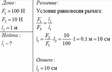 При равновесии рычага на его меньшее плечо действует сила 100 Н, а на большее — сила 10 Н. Большее плечо равно 1 м. Определите меньшее плечо рычага.