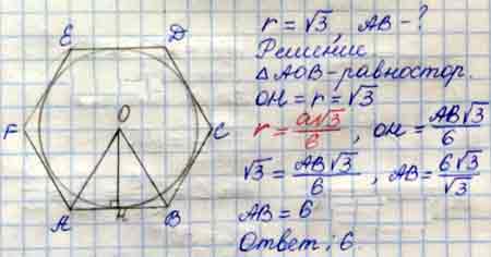 Найдите сторону правильного шестиугольника, описанного около окружности, радиус которой равен √3