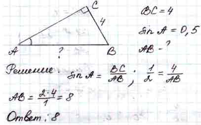 В треугольнике ABC угол C равен 90°, BC = 4, sin A = 0,5. Найдите AB