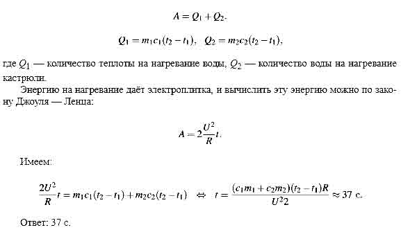 Чтобы за­ки­пе­ла вода на плит­ке, не­об­хо­ди­мо на­греть и ка­стрю­лю и воду до тем­пе­ра­ту­ры ки­пе­ния воды: