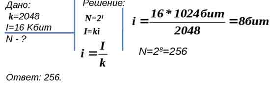 Чему равна мощность алфавита, используемого для записи сообщения, состоящего из 2048 символов и имеющего объем 16 Кбит?