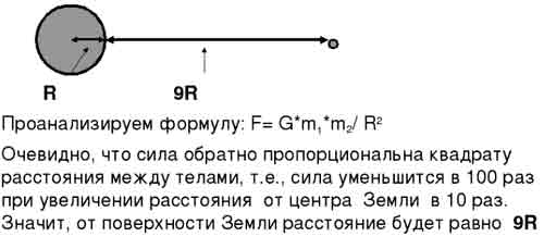На каком расстоянии от поверхности Земли сила притяжения к ней космического корабля станет в 100 раз меньше, чем у её поверхности ?