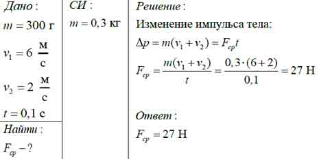 Стальной шарик массой 300 г падает вертикально на стальную плиту со скоростью 6 м/с, а отскакивает от неё со скоростью 2 м/с. Время соударения составляет 0,1 с. Определите среднее значение силы взаимодействия при ударе.