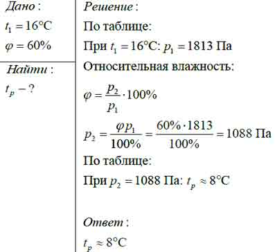 Относительная влажность воздуха при температуре 16 °С составляет 60%. Определите точку росы.