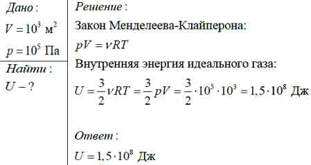 Воздушный шар объёмом 10^3 м3 заполнен воздухом, который сообщается с окружающей средой. Определите внутреннюю энергию воздуха в шаре.