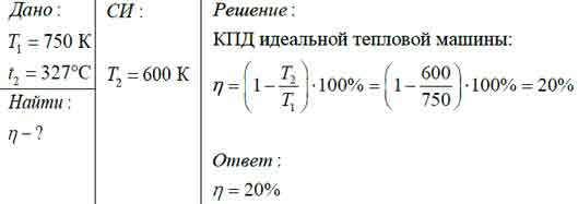 Определите КПД тепловой машины, если температура холодильника 327 °С, а температура нагревателя 750 К.
