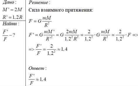 Предположим, что масса Земли стала в 2 раза, а радиус — в 1,2 раза больше. Определите, во сколько раз изменилась сила тяжести, действующая на тело, находящееся на полюсе.