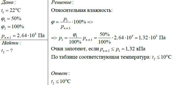 Человек в очках вошёл с улицы в тёплую комнату и обнаружил, что его очки запотели. Какой должна быть температура на улице, чтобы наблюдалось это явление? В комнате температура воздуха 22 °С, а относительная влажность 50 %. Поясните, как вы получили ответ