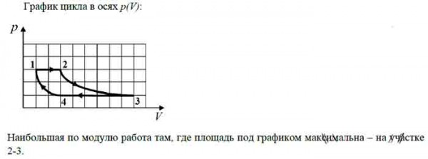 В координатах р, Т показан цикл тепловой машины, у которой рабочим телом является идеальный газ. На каком участке цикла работа газа наибольшая по модулю?