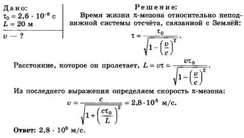 Собственное время жизни п-мезона 2,6 • 10^-8 с. С какой скоростью должна лететь эта частица, чтобы до распада пролететь 20 м?
