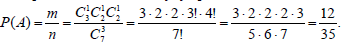 В ящике три белых, два черных и два красных шара. Случайно из ящика вынимают три шара. Какова вероятность, что они будут разных цветов?