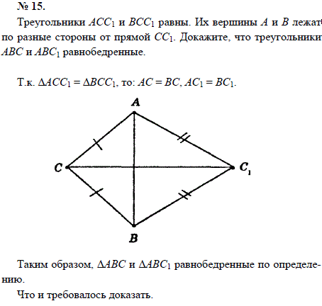 Треугольники АСС1 и ВСС1 равны. Их вершины А и В лежат по разные стороны от прямой СС1. Докажите, что треугольники АВС и АВС1 равнобедренные