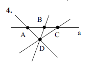 Отметьте точки A, B, C, D так, чтобы точки A, B, C лежали на одной прямой, а точка D не лежала на ней. Через каждые две точки проведите прямую. Сколько получилось прямых?