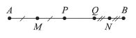 = 2QB, т. е. точки М, Р и Q делят отрезок АБ на четыре равные части. Отсюда следует, что