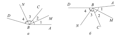 а) Луч ВС проходит внутри угла ABD и поэтому делит этот угол на два угла: ABC и CBD (рис.37, а). Тогда