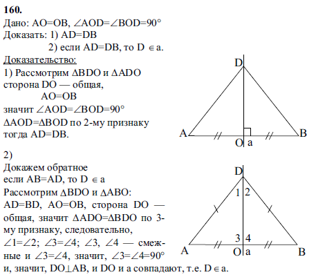 Прямая а проходит через середину отрезка АВ и перпендикулярна к нему. Докажите, что: а) каждая точка прямой а равноудалена от точек А и B; б) каждая точка, равноудаленная от точек А и B, лежит на прямой а