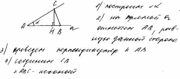 Постройте треугольник по стороне, прилежащему к ней углу и высоте, проведенной к этой стороне