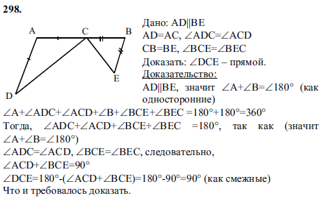 На рисунке 145 AD||BE, AC=AD и ВС=ВЕ. Докажите, что угол DCE — прямой