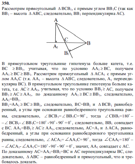 Неравенства АС ^ ВС и ВС ^ АС выполняются одновременно только тогда, когда АС = ВС. Поэтому из условия задачи следует, что АС = АА\ = ВС = ВВ\, причем точки А\, В\ и С совпадают. Но это и означает, что треугольник ABC — равнобедренный, а его угол С — прямой (рис.223, б).