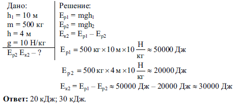 Молот копра для забивания свай (рис. 174) массой 500 кг падает с высоты 10 м. Чему будет равна потенциальная и кинетическая энергия молота на высоте 4м