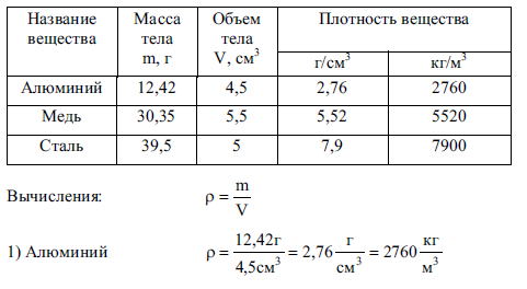 Рассчитав плотность тела и зная, что оно однородно и не имеет пустот, можно по справочникам определить, из какого вещества оно состоит.