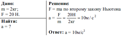 Какое ускорение будет сообщать камню массой 2 кг сила, равная 20Н