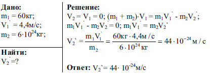 Когда человек подпрыгивает, то, отталкиваясь ногами от земного шара, он сообщает ему некоторую скорость, если масса человека 60кг ион отталкивается от земли со скоростью 4,4м/с. Масса земного шара 6 • 1024кг