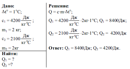 Пользуясь таблицей 8, вычислите (устно) количество теплоты, необходимое для нагревания на 1°С: а) воды массой 2 кг; б) льда массой 2 кг