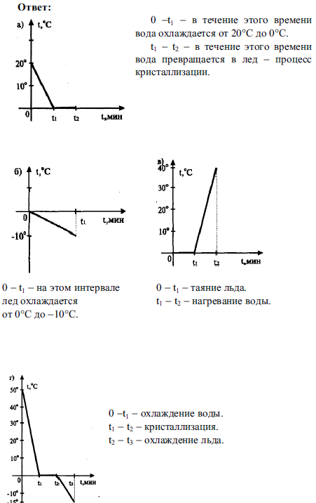 Начертите примерные графики зависимости температуры вещества от времени для следующих процессов