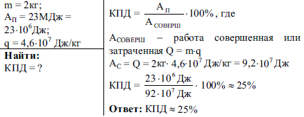 Израсходовав 2 кг бензина, двигатель совершил работу, равную 23 МДж. Определите КПД двигателя