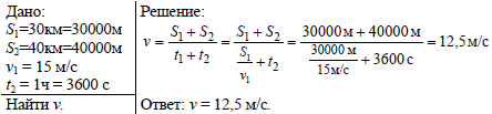 Автомобиль первую часть пути (30 км) прошел со средней скоростью 15 м/с. Остальную часть пути (40 км) он прошел за 1 ч. С какой средней скоростью двигался автомобиль на всем пути