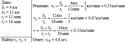 t1=12мин,t2=18мин           Vср=  S(весь)/t(все) =