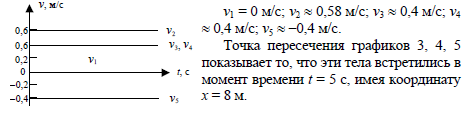 На рисунке 30 представлены графики зависимости координаты х от времени t для пяти тел. Определите скорости этих тел. Проанализируйте точки пересечения графиков. Постройте графики зависимости скорости от времени