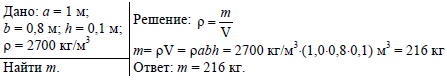 Определите массу мраморной плиты, размер которой 1,0x0,8x0,1 м