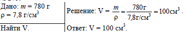 Стальная деталь машины имеет массу 780 г. Определите ее объем