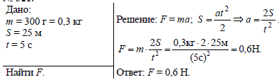 Под действием какой постоянной силы ранее покоящееся тело массой 300 г в течение 5 с пройдет путь 25 м