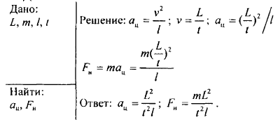 В одном из кинофильмов персонажу надо было перебросить записку через бурный ручей шириной L. Он догадался изготовить своего рода пращу, т.е. привязал записку к камню массой т, раскрутил камень на веревке длиной I в горизонтальной плоскости над головой и отпустил ее в нужный момент. Через время t после броска камень достиг противоположного берега. Найдите центростремительное ускорение и силу натяжения веревки во время вращения камня