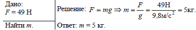 Подвешенная к потолку люстра действует на потолок силой 49 Н. Какова масса люстры