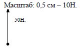 Изобразите графически силу, направленную вертикально вниз, модуль которой равен 50 Н (масштаб: 0,5 см — 10 Н)