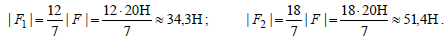 На рисунке 76 изображена сила F, равная 20 Н. Пользуясь ею как масштабным отрезком силы, определите, чему равны модули сил F1 и F2. Модуль какой из сил, изображенных на рисунке 77, больше всех и какой — меньше всех? Запишите эти силы в порядке возрастания их модулей