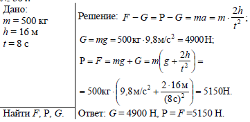 Подъемный кран поднимает груз массой 500 кг равноускоренно на высоту 16 м за 8 с. Определите силу тяжести и движущую силу. Сравните движущую силу F, силу тяжести G и вес груза P