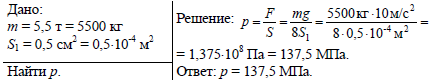На железнодорожную четырехосную платформу погрузили контейнеры общей массой 5,5 т. На сколько увеличилось давление платформы на рельсы, если площадь соприкосновения колеса с рельсом 0,5 см2