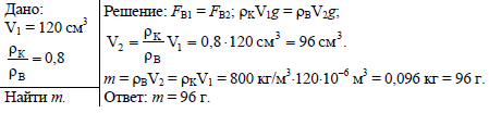 Плавающее тело вытесняет керосин объемом 120 см3. Какой объем воды будет вытеснять это тело? Определите массу тела