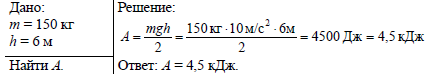 Лежащий в горизонтальном положении столб поставили вертикально. Определите произведенную против силы тяжести работу, если масса столба равна 150 кг, длина 6 м и сечение столба одинаково по всей длине