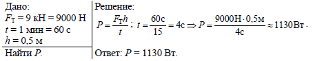 Паровой копер поднимает на высоту 0,5 м свайный молот 15 раз за 1 мин. Вычислите мощность, затрачиваемую на выполнение этой работы, если вес ударника 9 кН