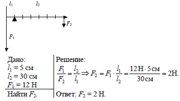 F_2= (12 Н * 0,05 м)/0,3 м=0,6/0,3 =2Н