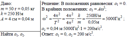 Шарик с отверстием, прикрепленный к легкой пружине жесткостью 250 Н/м, может совершать незатухающие колебания вдоль стержня (рис. 248). Чему равно ускорение, испытываемое шариком в положении равновесия и в крайних положениях, если амплитуда колебаний равна 4 см, а масса 50 г